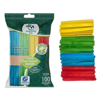 O Palito de Sorvete Colorido Sortido da Theoto é ideal para artesanato, trabalhos escolares, atividades educativas e projetos criativos em geral. Com cores variadas e acabamento uniforme, estimula a criatividade e facilita o desenvolvimento de atividades manuais, sendo muito utilizado em escolas, oficinas, festas e também no uso doméstico.