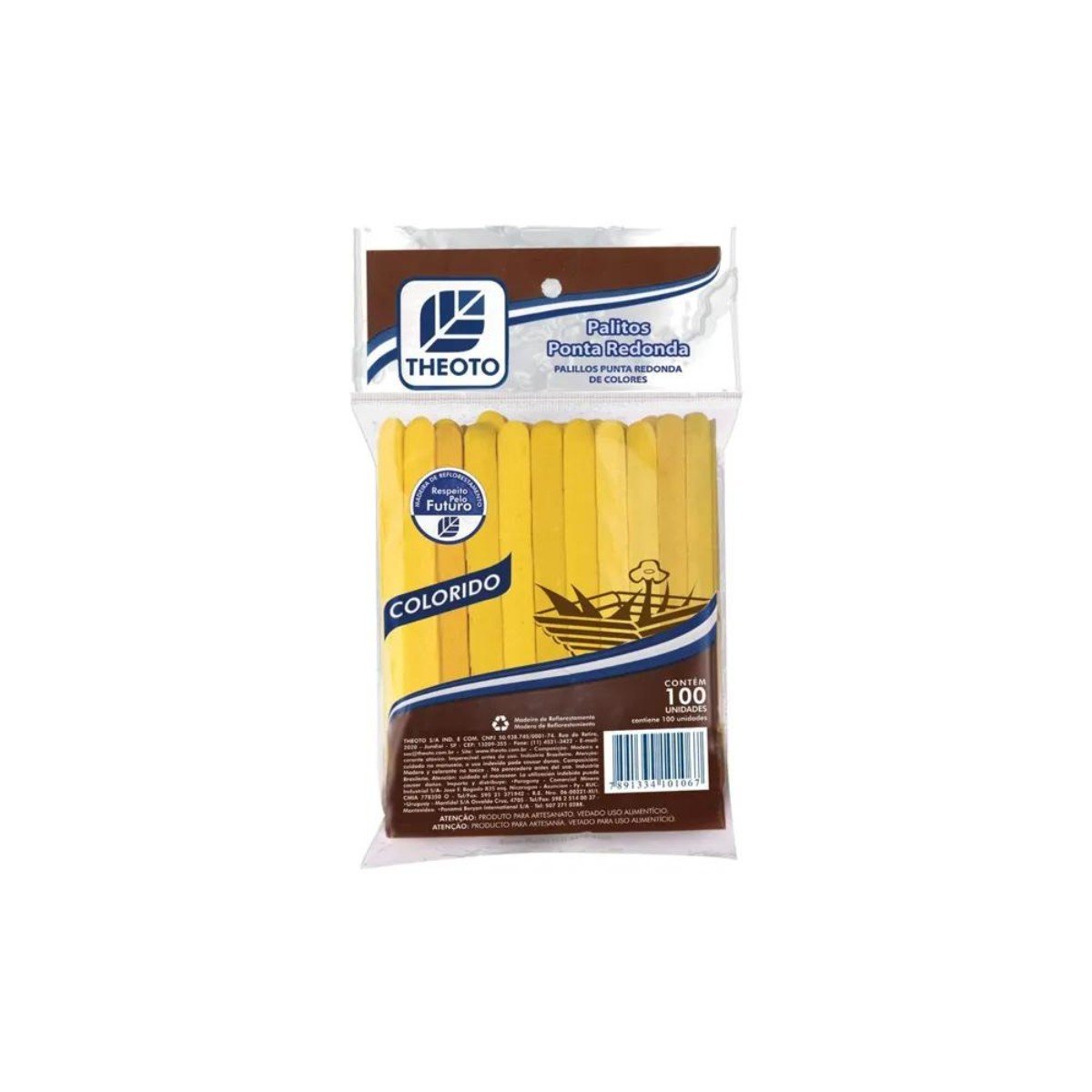 Palito Ponta Redonda Madeira Amarelo C/100 Unidades Theoto