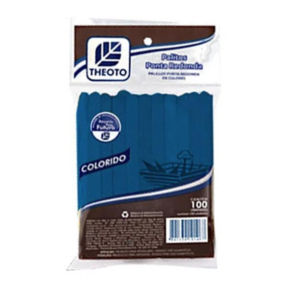 Palito Ponta Redonda Madeira Azul C/100 Unidades Theoto