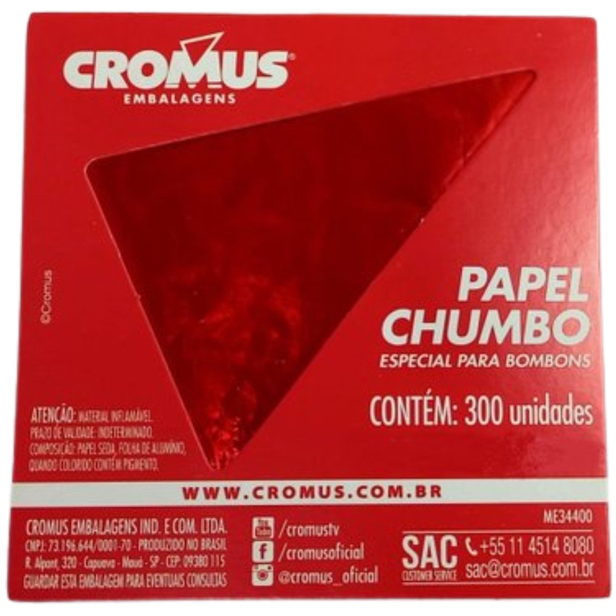O papel chumbo vermelho da Cromus é ideal para embalar chocolates com proteção e um visual marcante. Perfeito para trufas, bombons e ovos de Páscoa, ele ajuda a conservar o sabor e a qualidade dos produtos, além de proporcionar uma apresentação atrativa e profissional. Sua cor vibrante destaca os doces, sendo uma excelente escolha para valorizar suas criações.