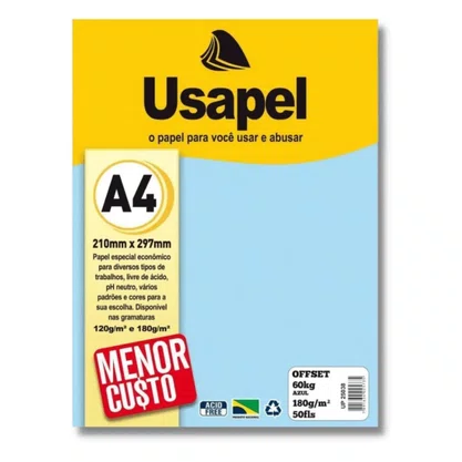 O Papel Offset Azul 180 g da Usapel é ideal para quem busca qualidade, resistência e um acabamento visual diferenciado em projetos gráficos e artesanais. Com gramatura mais encorpada, oferece maior firmeza, sendo perfeito para convites, cartões, capas, trabalhos escolares, artesanato e papelaria personalizada. O pacote com 50 folhas garante ótimo rendimento para uso profissional ou doméstico.