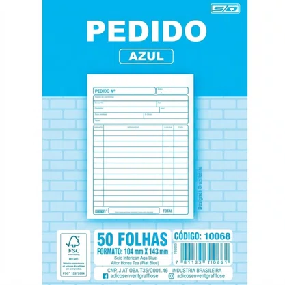 Pedido 1 Via 1/36 Azul 104x143mm S/ Copia 50fls Sdomingos Cod 10068