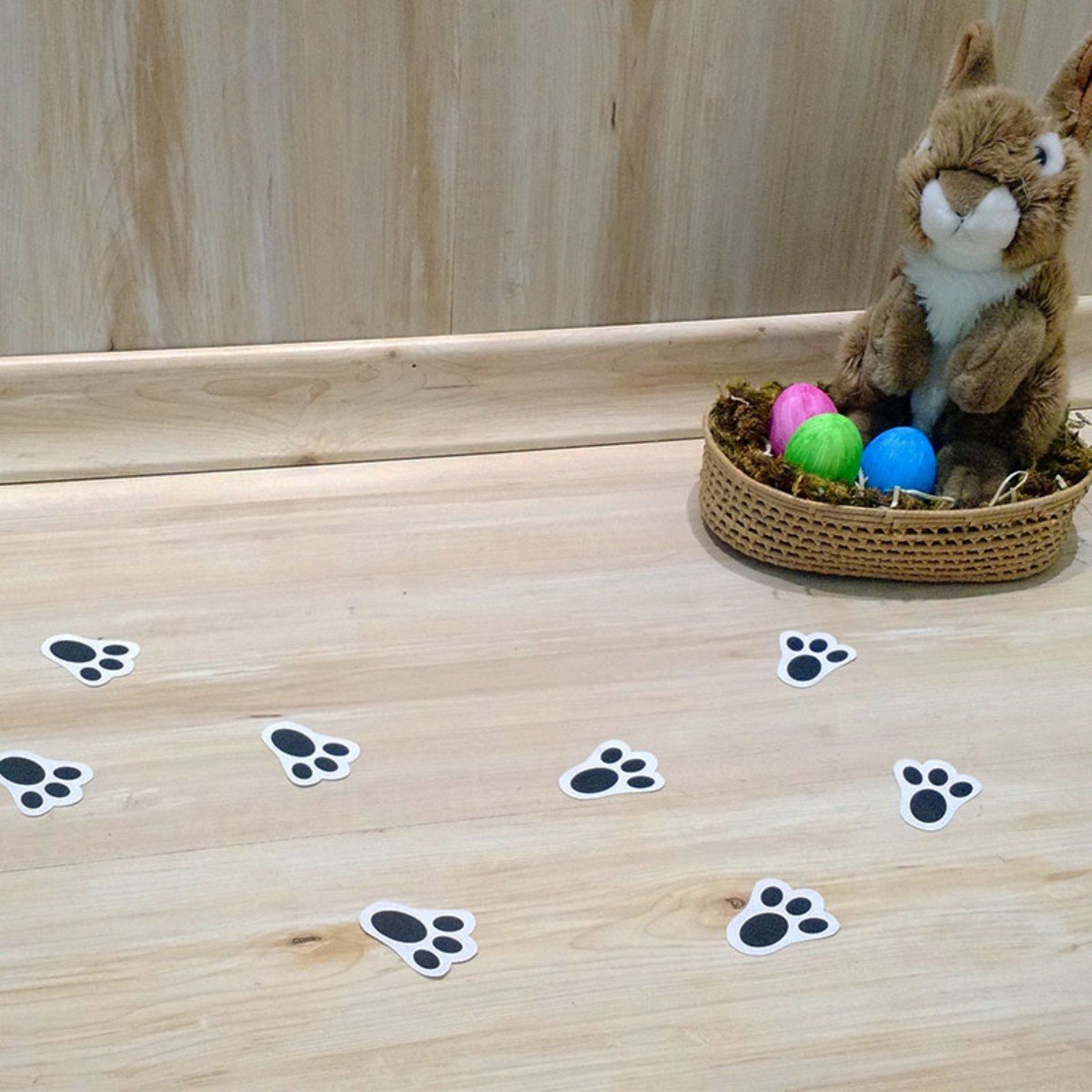 Utilize as pegadas de coelho para criar uma trilha charmosa em sua festa ou surpreenda os pequenos com uma caça ao coelho personalizada!