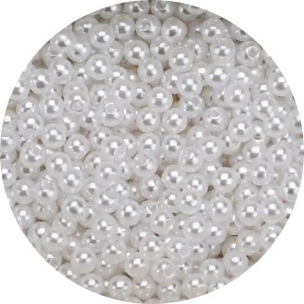 Pérolas inteiras de 4mm na cor branca, ideais para uma variedade de aplicações, incluindo decoração, artesanato, bijuterias e projetos de scrapbooking. Elas são perfeitas para criar efeitos elegantes e delicados em seus projetos, com uma textura lisa e acabamento brilhante.