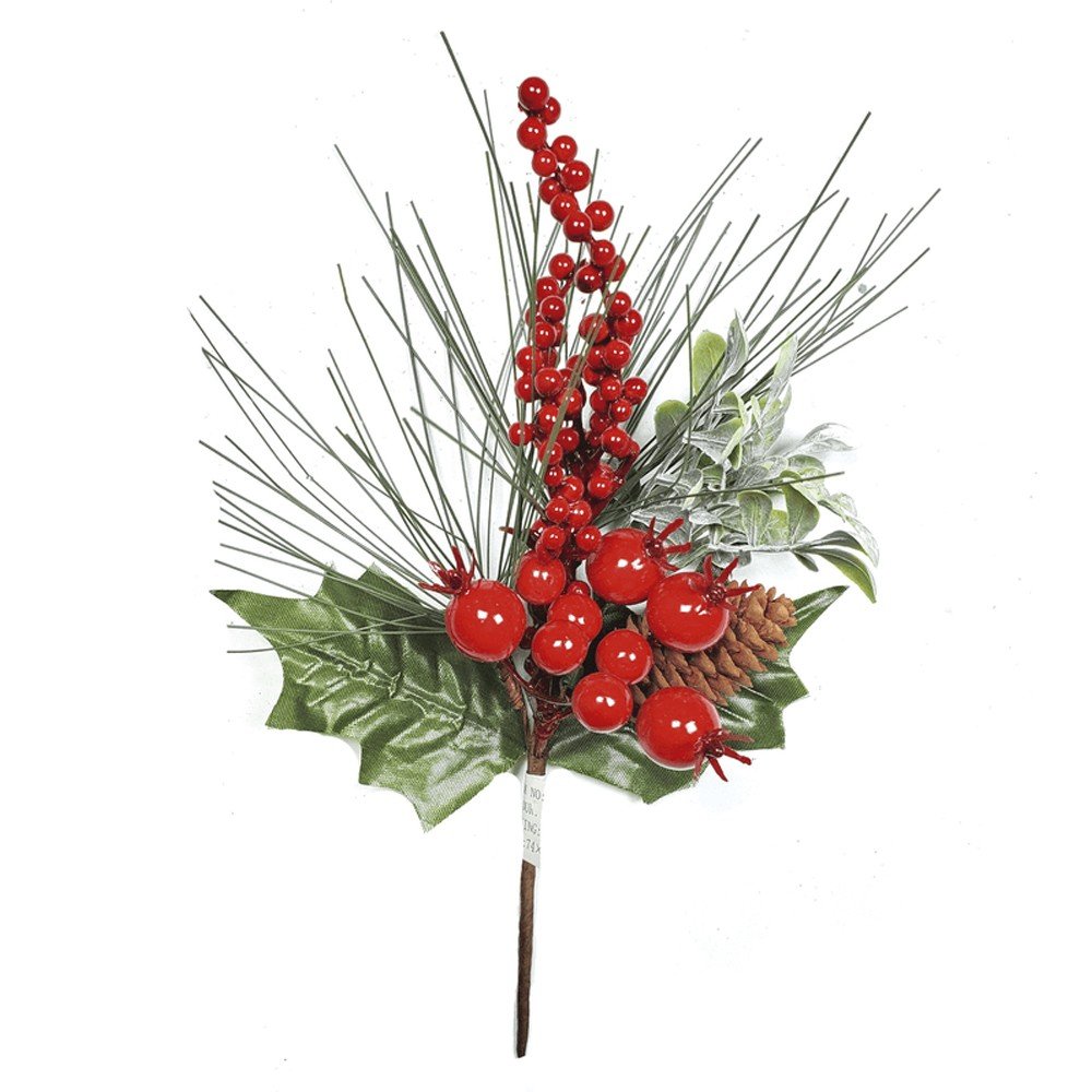 Pick Frutas Vermelhas com Pinha e Folhagem 24x14cm Galhos Matsumoto