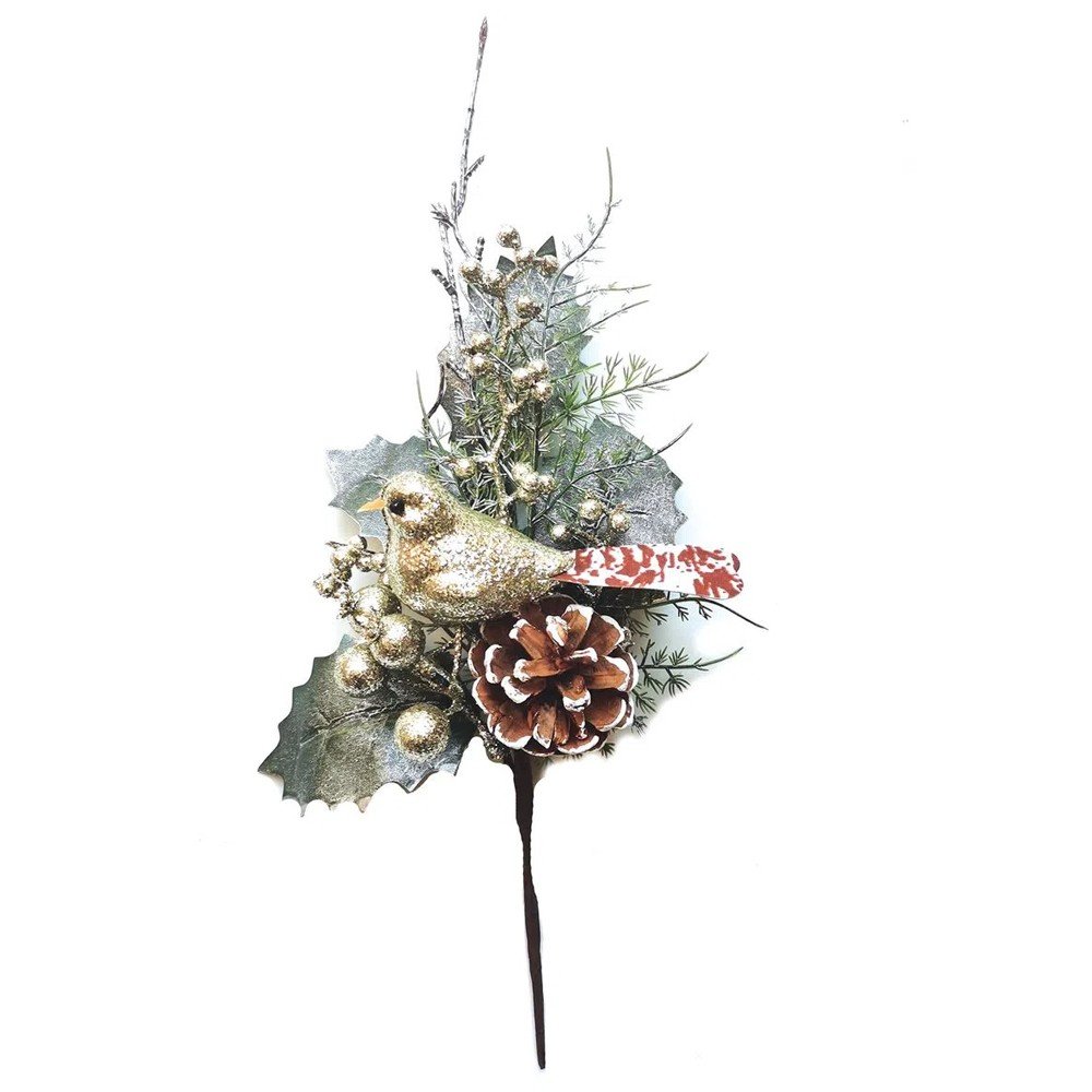 Pick Pássaro e Frutinhas Champagne 35cm Galhos Matsumoto