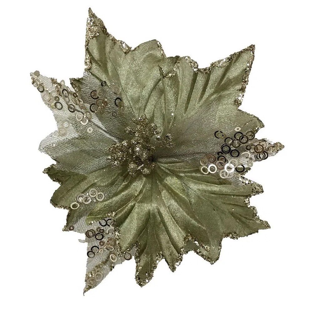 Pick Poinsétia Flor Verde Olivia 23x15cm Galhos Matsumoto