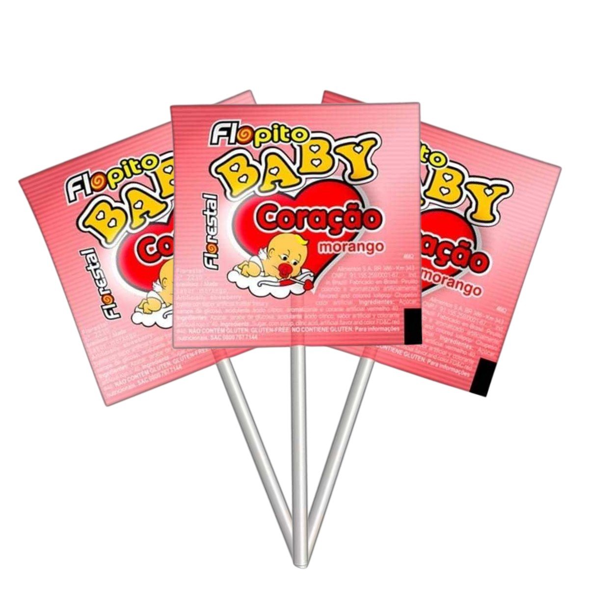 Pirulito Baby Coração Morango 50 unidades 200g Flopito Florestal