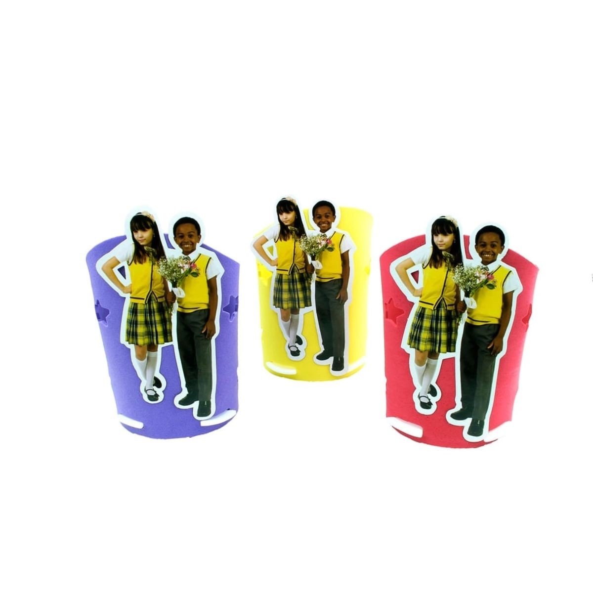 Conjunto de porta-trecos decorativos com os personagens Cirilo e Maria Joaquina, ideal para organizar pequenos objetos e decorar ambientes infantis ou festas temáticas.