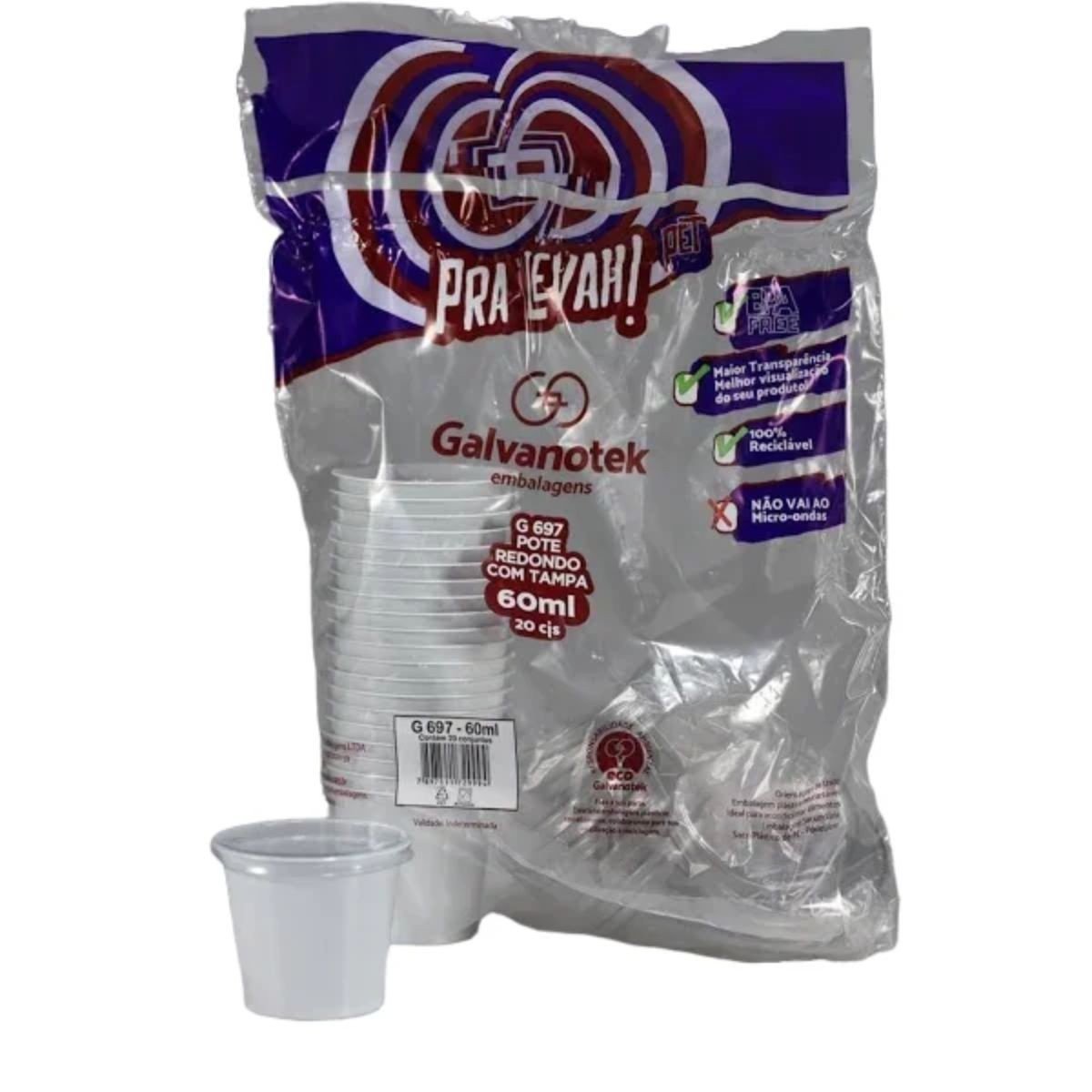 Pote 60ml Branco Com Tampa G 697 Com 20 Unidades Galvanotek