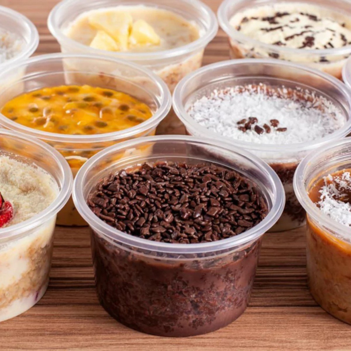 Utilize os potes para montar sobremesas individuais como mousse, pavê ou salada de frutas, garantindo uma apresentação mais organizada e prática.