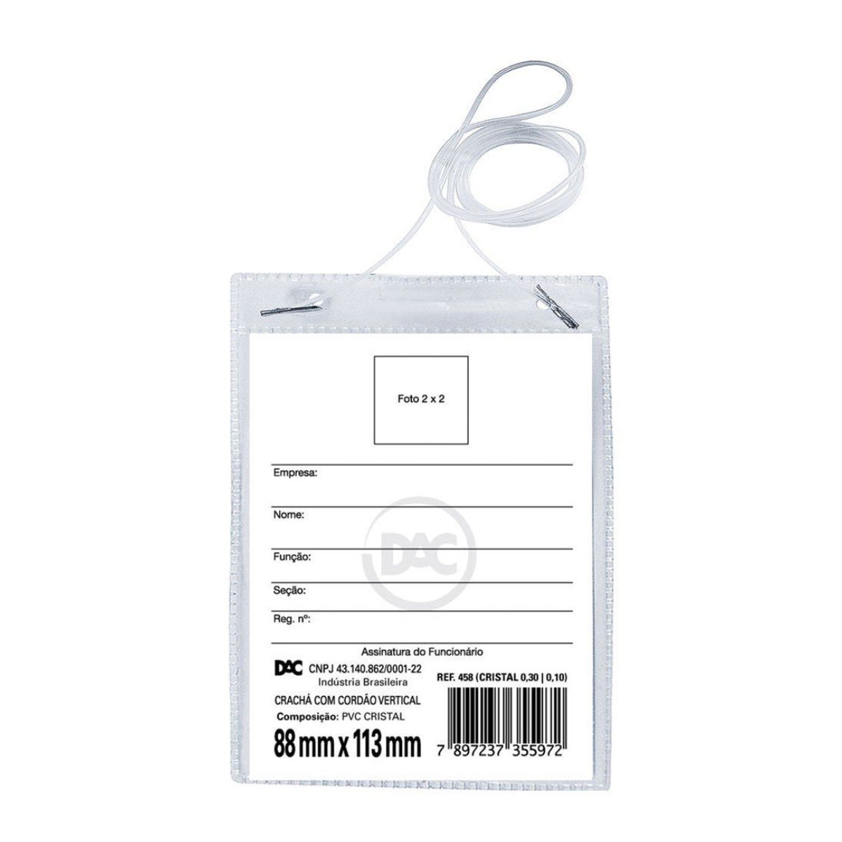 O Protetor de Crachá Vertical da DAC é perfeito para eventos e conferências, oferecendo uma forma prática de manter o crachá seguro e visível. Fabricado em material transparente e resistente, ele permite fácil leitura do crachá sem precisar removê-lo.