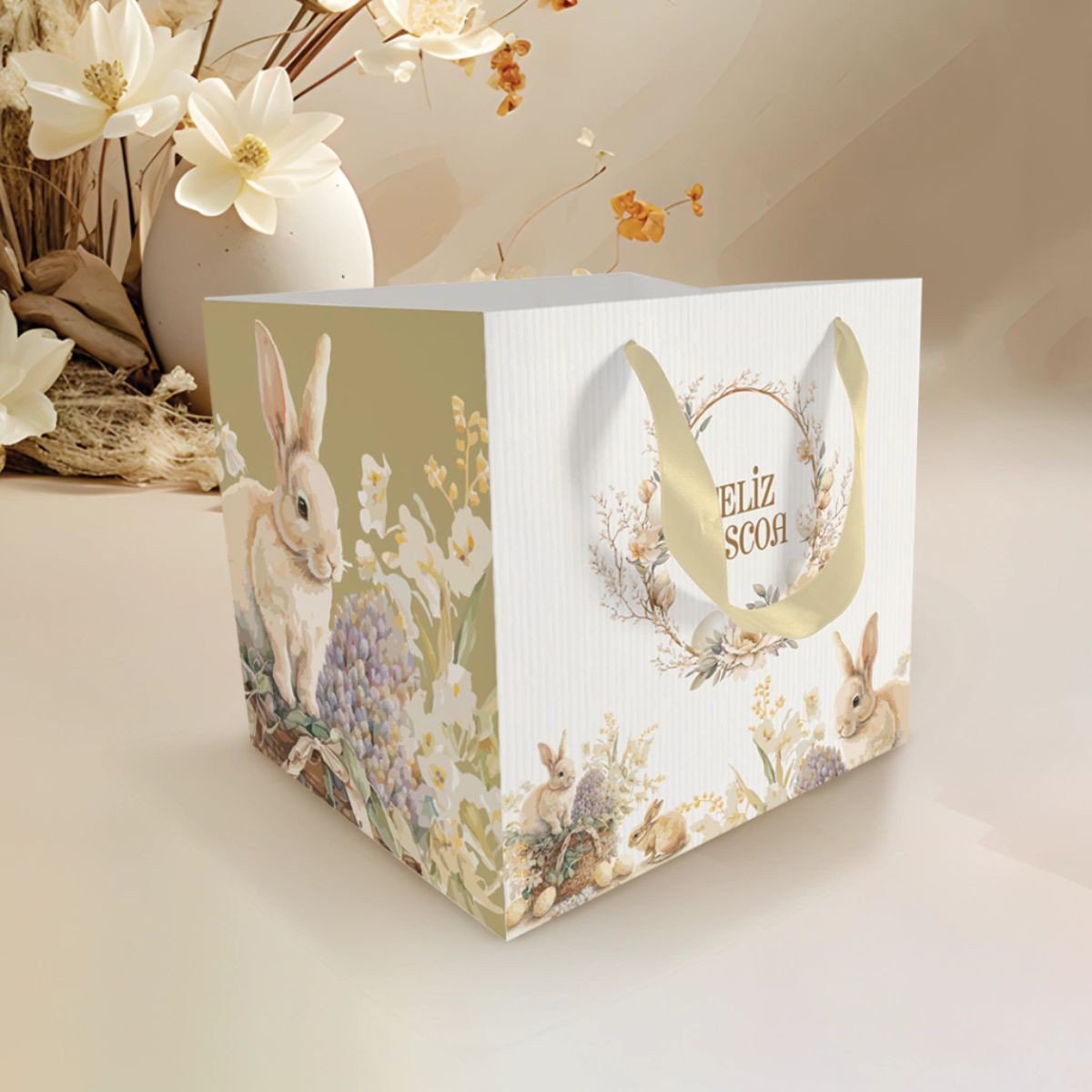 A sacola quadrada com temática de Páscoa é perfeita para embalar presentes e lembrancinhas com um toque especial. Seu design encantador traz ainda mais charme para a celebração.