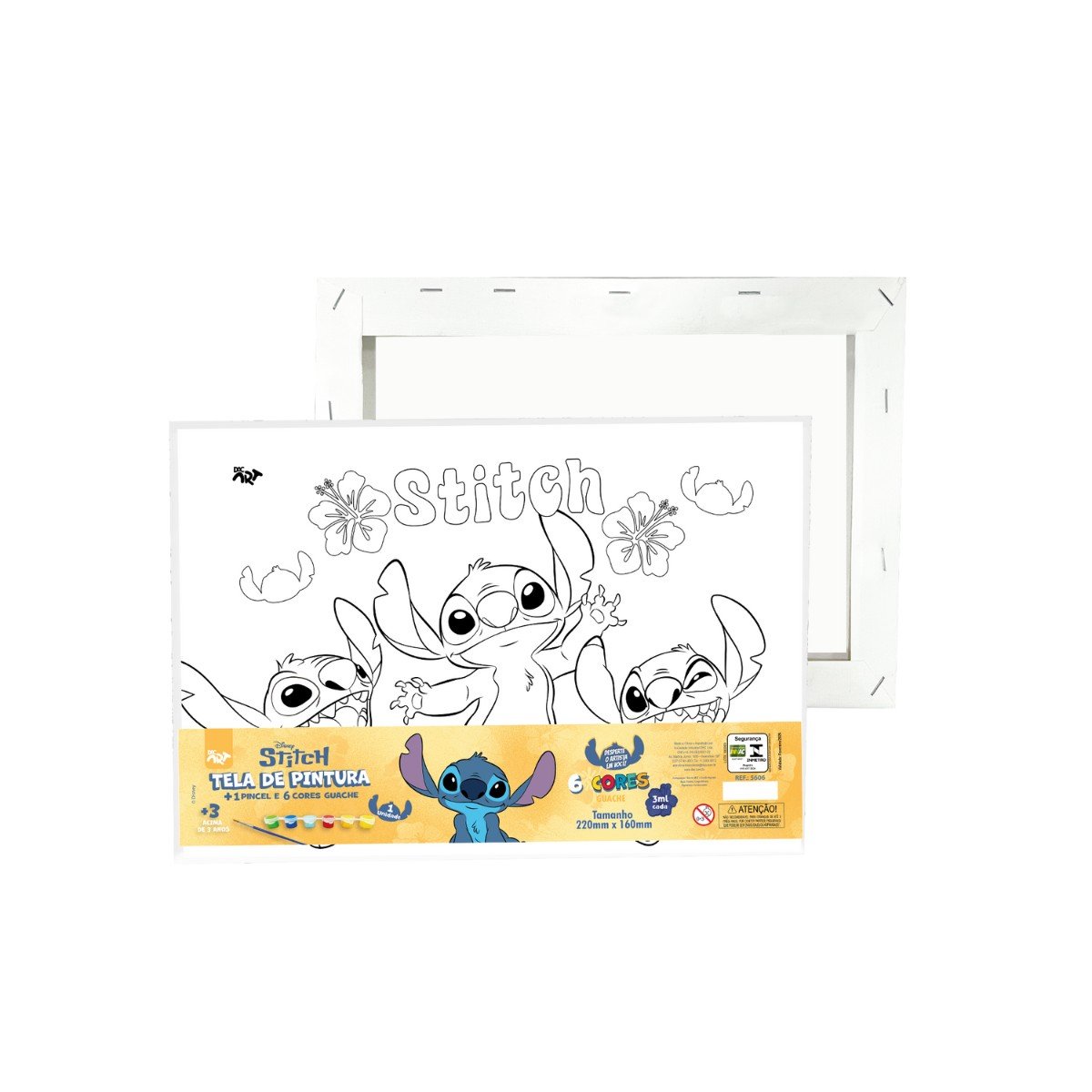 Tela Pintura Stitch com 6 Guaches 3ml + Pincel DAC