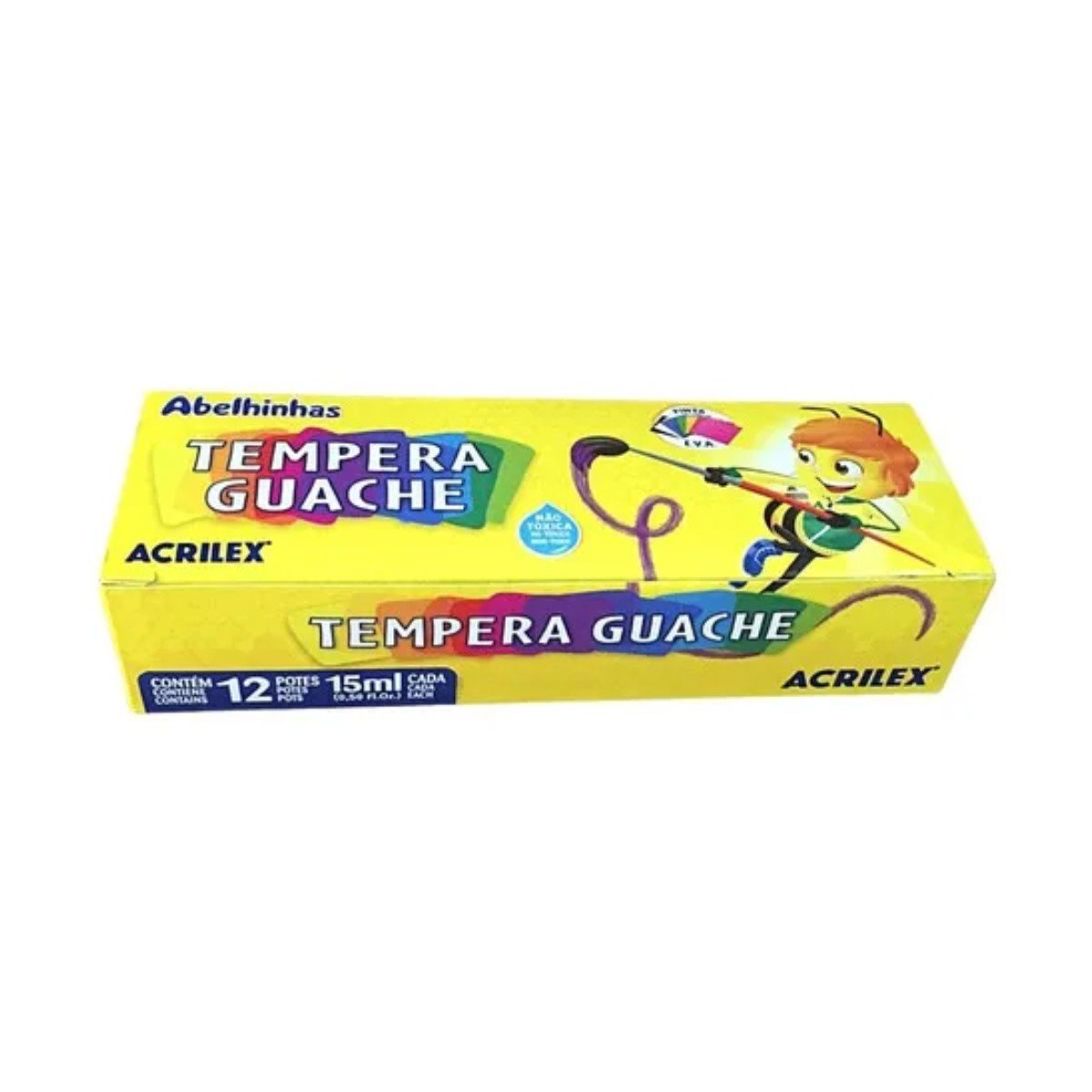 A Têmpera Guache Acrilex é um importante instrumento para o desenvolvimento da criatividade, coordenação motora e percepção visual das cores. Não é tóxica, é solúvel em água e disponível em 13 cores que são miscíveis entre si. Pode ser aplicada em papel, papel cartão, cartolina, gesso, madeira e cerâmica.