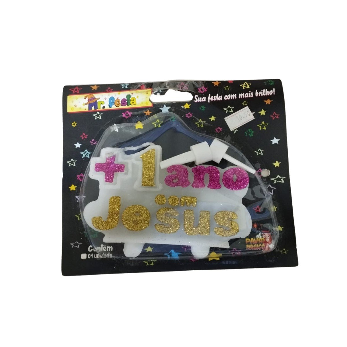 Vela +1 Ano Com Jesus Rosa E Dourado Mr Festa