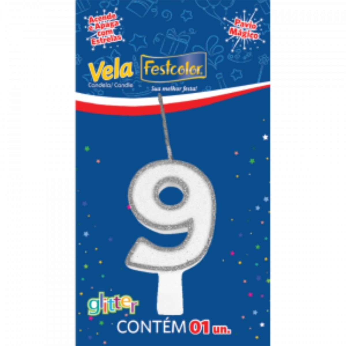 Vela Festcolor Gigante N. 9 Gliter Prata