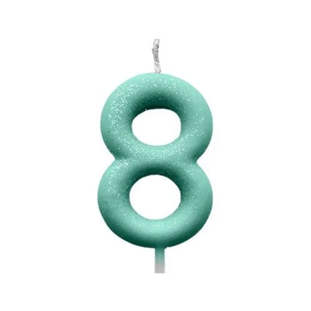 Vela N.8 Verde Pastel Cintilante Silver Plastic