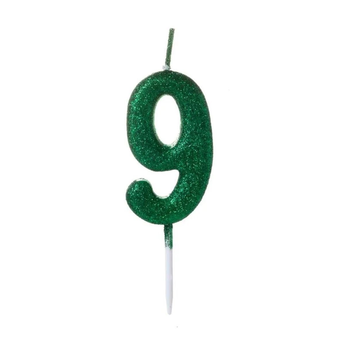 Vela Número 9 Verde com Glitter Pequena Silver Festas