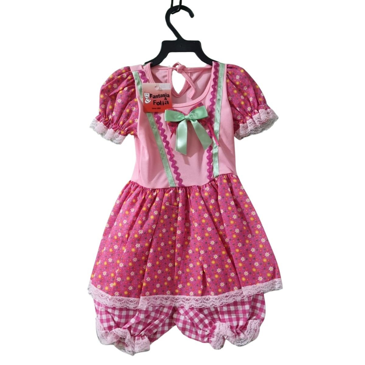 Vestido Junino Caipira Tamanho Nº03 Rosa Jeitinho de Anjo