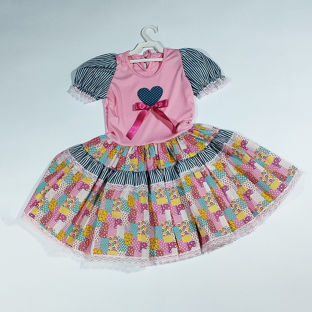 Vestido Junino Caipira Tamanho Nº04 Rosa Jeitinho de Anjo