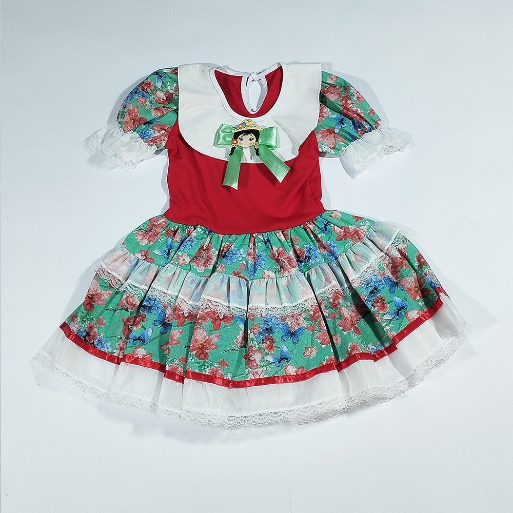 Vestido Junino Caipira Tamanho Nº04 Vermelho Jeitinho de Anjo