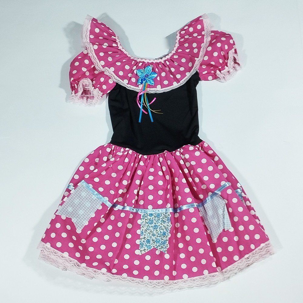 Vestido Junino Caipira Tamanho Nº14 Rosa Jeitinho de Anjo