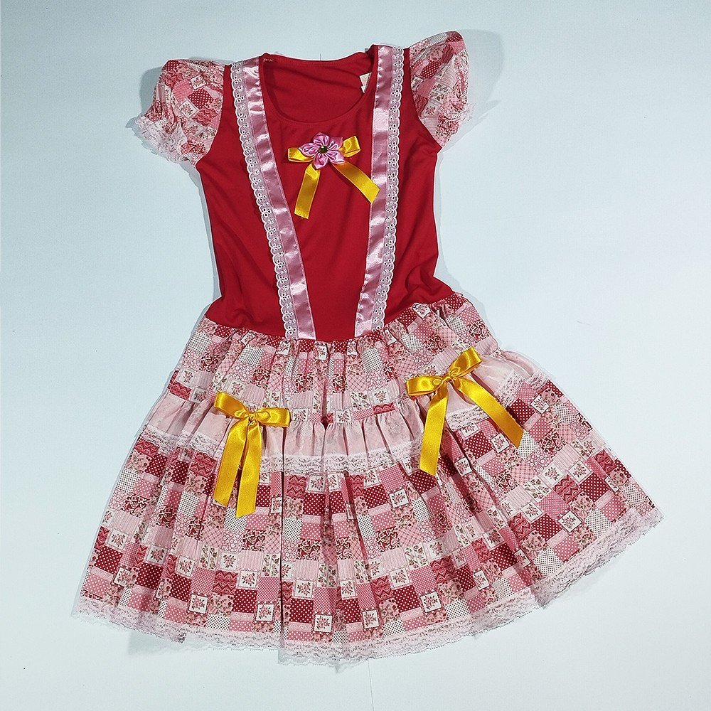 Vestido Junino Caipira Tamanho Nº16 Vermelho Jeitinho de Anjo