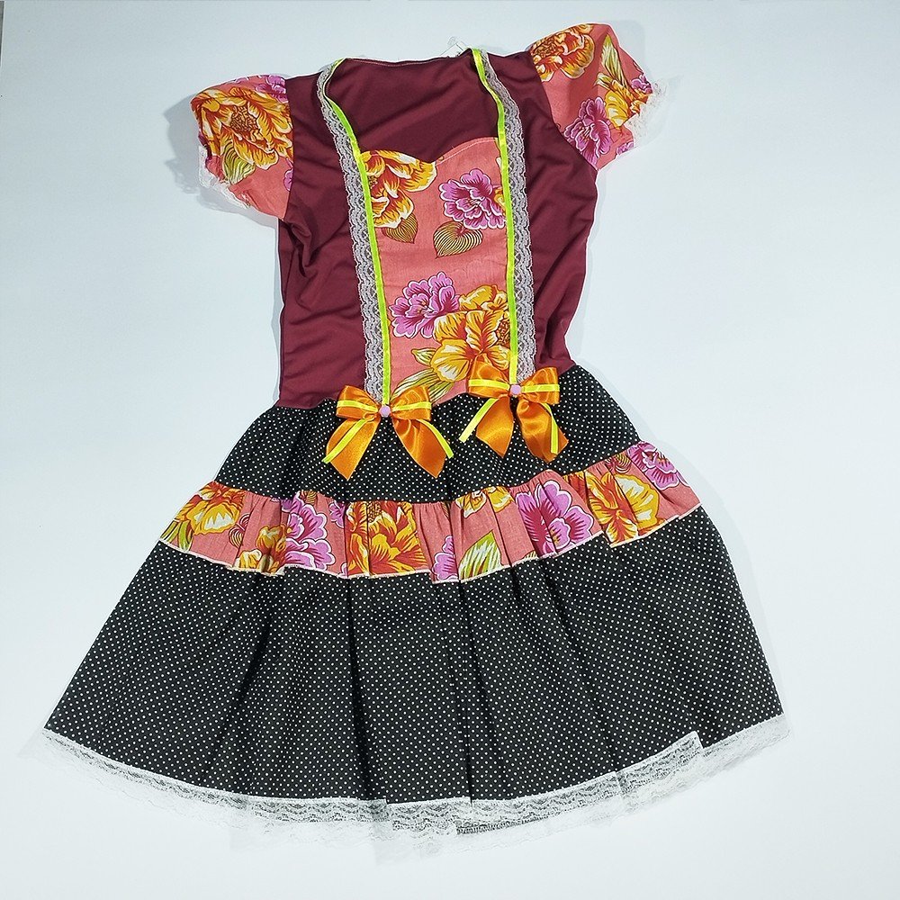 Vestido Junino Caipira Tamanho Nº42 Vinho Jeitinho de Anjo